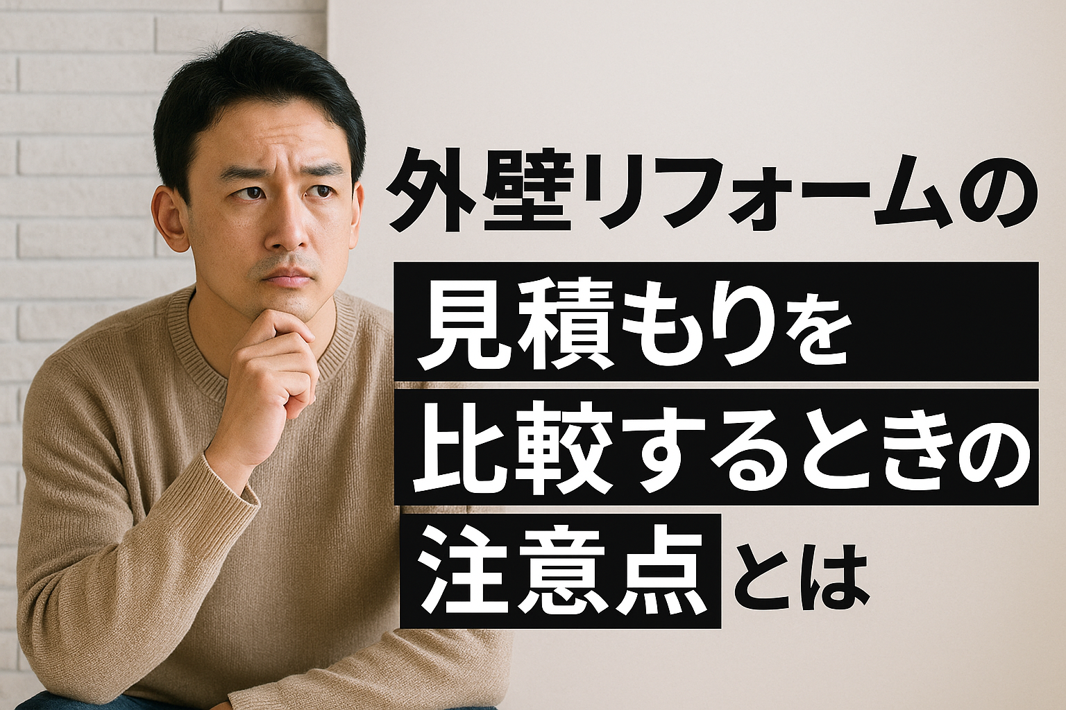 他社より大幅に安い金額には、足場を含まない・手抜き工程を前提にしている・低品質な材料を使うなどの可能性があります。見積内容と仕様を慎重に照合しましょう。